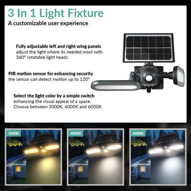 LED Solar Wall Lights - Solar Powered Security Light Fixtures - Wall Mount - Color Temperature Selectable