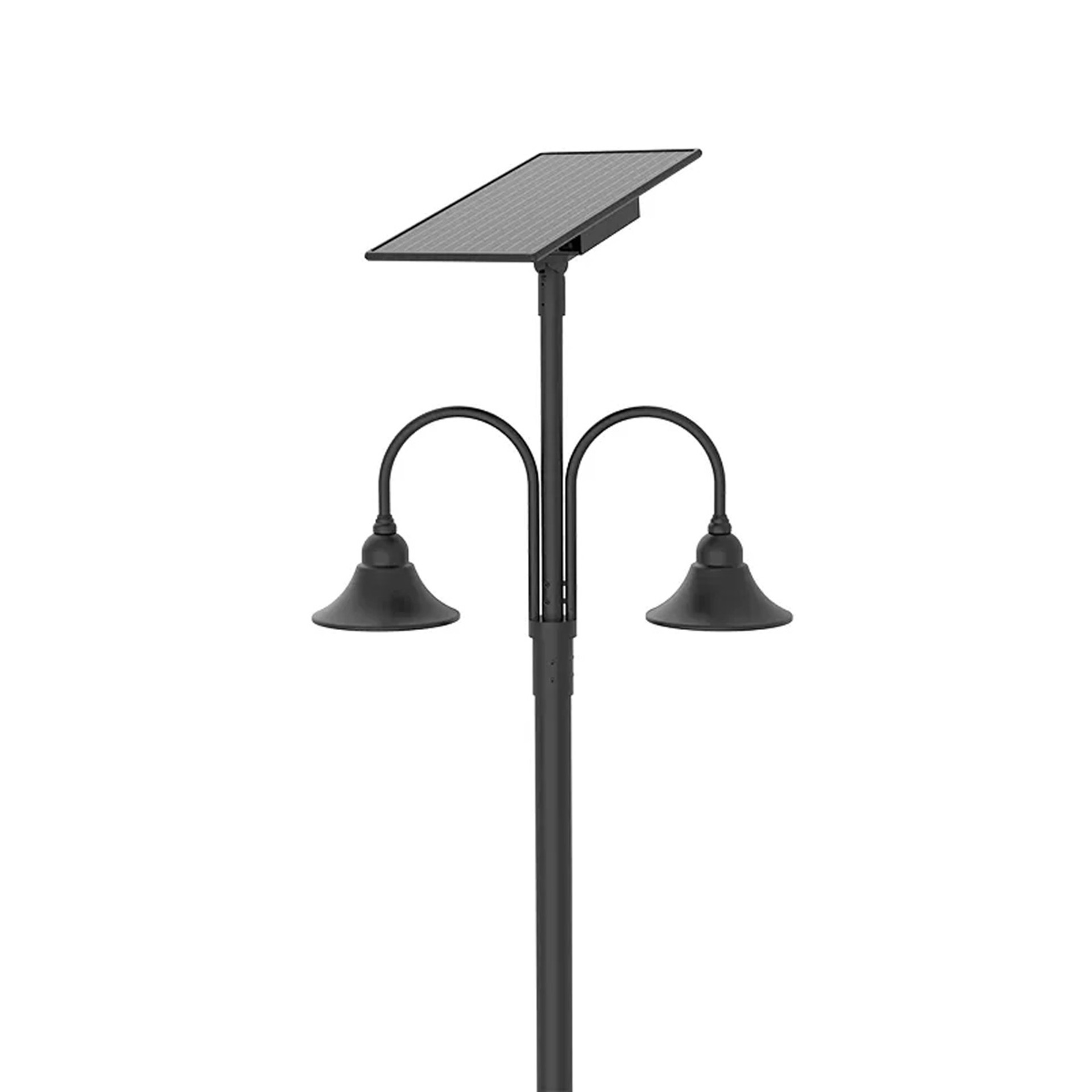 Designer Bell LED Double Head Solar Post Top - 20 Inch Diameter - 50 Watt - 8000 Lumens - Color Temperature Selectable 30K/40K/50K - 5 Inch Tennon Adaptor - Bronze Finish